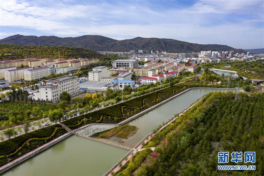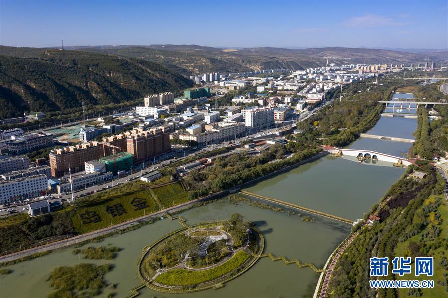 宁夏固原市隆德县境内的渝河两岸健身步道、绿化景观等设施完善,成为居民休闲娱乐的好去处(10月11日无人机拍摄)。 新华社记者 冯开华 摄