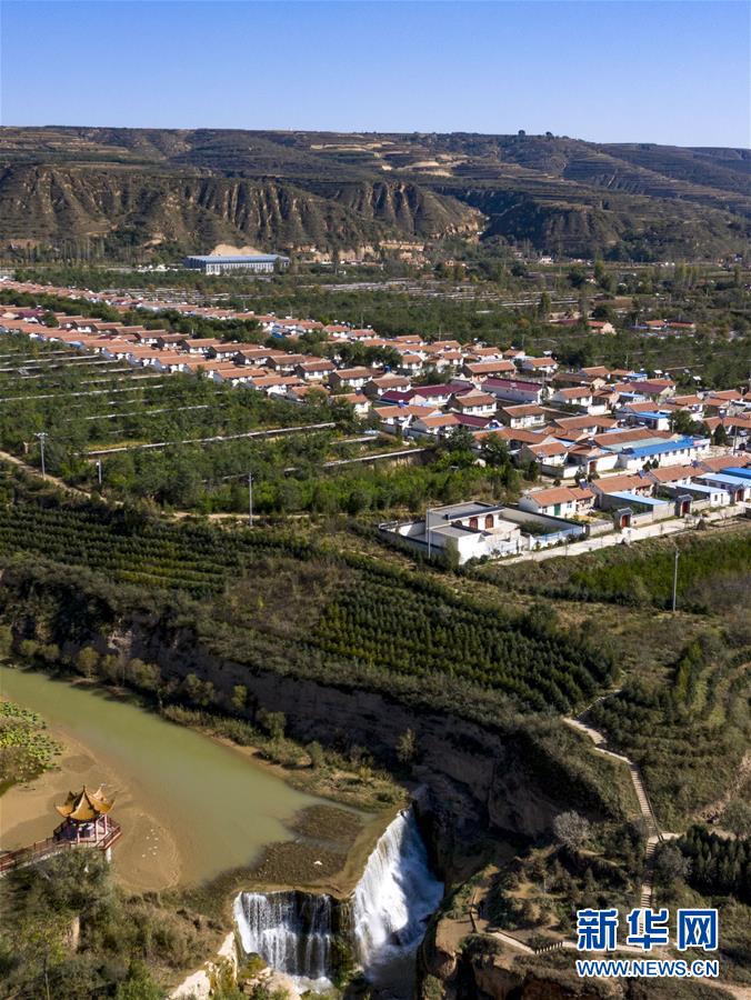 流经宁夏固原市彭阳县城阳乡的茹河,因地壳变化和河床运动形成旱塬上的瀑布,当地以此发展乡村旅游(10月12日无人机拍摄)。 新华社记者 冯开华 摄
