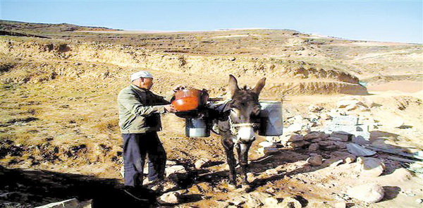 上个世纪,宁南山区大部分群众吃水靠人担驴驮。(资料图片)