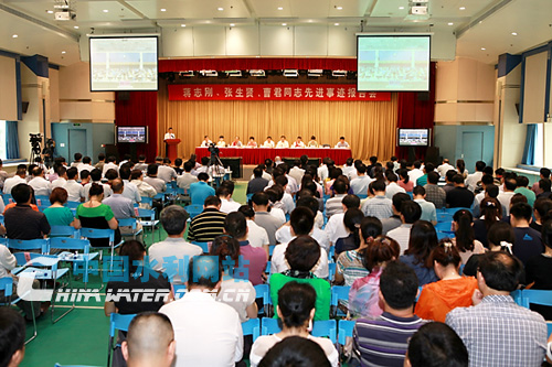 报告会上,水利部领导为三位先进典型(张生贤同志由其妻子刘亚菽代表)佩戴大红花,六名报告团成员从不同角度、不同侧面介绍了三位同志的先进事迹,赢得了与会代表的热烈掌声。