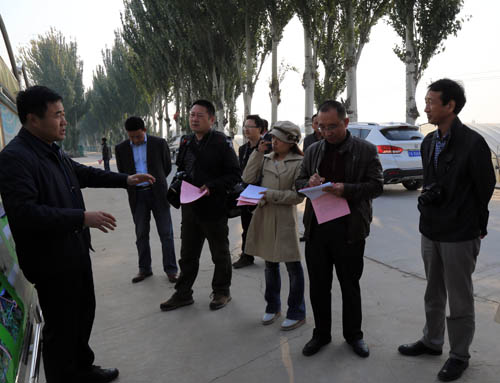 “天下黄河富宁夏”“黄河百害,唯富一套”,谚语曾这样书写宁夏平原。这里土地平坦,面积广阔,但多年平均降水量仅有289毫米,只能利用黄河水进行自流灌溉,历经2000多年,“塞上江南”如今仍因其丰富的农业物产而闻名华夏。宁夏北部引黄灌区用占全区二分之一的耕地,生产了全区四分之三的粮食。但是,曾经的宁夏自流灌区农业灌溉水有效利用系数仅0.37左右,远低于全国的0.48;亩均灌溉毛用水量922立方米,超过全国平均水平28%。从2005年开始,宁夏成为全国第一个以省(区)为单位的节水型社会建设试点,农业节水成为引黄灌区的重点。来到宁夏,采访团最想看到的就是这古老平原之上的农业节水新特点。于是在10月19日上午,记者来到贺兰县,观摩这里的高效节水项目。