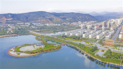 渝河治理后,隆德县城山清水秀。 记者 党硕 摄