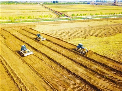 秋冬季节,贺兰县农田水利建设正酣。10月13日,贺兰县常信乡稻渔空间,推土机正在平整农田。据了解今年贺兰县秋冬农田水利基本建设共规划建设重点片区12个,建设高标准农田10.76万亩。