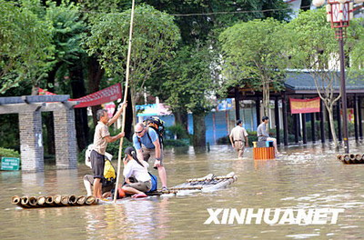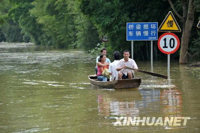 6月14日,在广西梧州市长洲区倒水镇,人们乘船从被水淹没的公路上通过。 据广西防汛抗旱指挥部统计,截至13日21时,强降雨已造成广西410.95万人受灾,倒塌房屋7000多间,农作物受灾228.137千公顷,公路中断1041条次。目前,各受灾地区党委、政府及有关部门正积极组织开展抗洪抢险救灾工作,各项抢险救灾正在有序、科学开展。新华社记者 周华 摄 本站6月16日讯 中央气象台发布的消息称,从6月15日起,南方地区将自西向东遭受新一轮强降雨天气袭击。此次强降雨和5月底、6月上旬的连续性强降雨过程的叠加,将进一步增强洪涝灾害的破坏性,使全国防汛抗洪形势更加严峻。全国防汛抗洪工作进入紧要关头。 入汛以来,我国西南东部、华南、江南、浙闽沿海先后出现大到暴雨天气过程。持续不断的强降雨,使长江、珠江、西江、闽江等流域部分干流和支流,发生超警戒水位洪水。目前,暴雨洪水已造成受灾人口3800多万人,因灾死亡和失踪200多人,倒塌房屋超过12万间,直接经济损失260亿元。 面对严峻的防洪形势,国家防总坚决贯彻党中央、国务院领导的指示精神,一手抓抗震救灾,一手抓防汛抗洪,立足防大汛、抗大灾,超前部署,超常规安排;地方各级党委政府紧急动员起来,靠前指挥,科学调度,及时组织人员安全转移,有效减少了灾害损失。 6月15日,在广西藤县西江路,居民从被水淹没的街道上通过。 当日,记者从广西壮族自治区民政厅获悉,截至15日17时初步统计,此次降雨过程已造成广西87个县(市、区)受灾,受灾人口680.6万人,转移安置83.88万人,因灾造成直接经济损失37.01亿元。新华社记者 周华 摄 洪涝灾害袭击全国20个省份 连日来,深圳市遭受50年一遇的特大强降雨。宝安区24小时内降雨量超过400毫米。暴雨使深圳多处街道、民宅、工厂遭水浸,并引发多处滑坡,已造成6人死亡、1人失踪。受暴雨影响,深圳市中小学、幼儿园被迫停课,公路铁路航空均受阻。 据广东省防总统计,从5月25日至6月14日8时,广东大部分地区连续遭受强降雨的袭击。持续暴雨和洪水已造成广东17个市不同程度受灾,受灾人口200多万人,死亡18人。 6月13日,广西鹿寨发生特大洪灾,是该县新中国成立以来受淹范围最广的一次洪灾。国家防总办公室已派专家抵达该县指导抗灾。 国家防办有关负责人说,继5月底华南发生水灾后,6月7日以来我国长江、珠江流域自西向东发生强度更大的降雨过程,引发严重洪涝灾害。在此轮强降雨中,广西、广东、福建等12个省份遭遇洪水袭击。 权威分析显示,此轮暴雨洪水过程呈现三个显著特点:一是降雨范围广、强度大、历时长。二是洪水来得快、涨势猛、量级高。全国共40多条河流、约130处水文站发生了超警戒水位的洪水。广西梧州站水位从6月10日的多起涨,至15日已接近。三是受灾范围广、灾情重、损失大。 今年以来,全国共有20个省份和新疆生产建设兵团发生洪涝灾害。截至6月15日12时,全国农作物受灾面积2274千公顷,成灾1100千公顷,受灾人口3856万人,因灾死亡169人,失踪52人,倒塌房屋12.57万间,直接经济损失260亿元。 据中央气象台副台长端义宏分析,今年南方强降雨来得早,并长时间稳定在华南地区,与北方强大的低气压系统有关。自5月下旬以来,来自北方的冷空气和来自海上的暖湿气流持续交汇在华南地区上空,形成持续强降雨过程。6月上旬,西南季风进入活跃期,同时西北太平洋副热带高气压也开始加强西伸北抬。受这两个热带系统的共同作用,来自于海上的强暖湿气流从华南一直向北延伸到江南地区,从而造成冷暖空气交汇在江南一带,形成持续强降雨。6月中旬,冷暖空气交汇区将在长江中下游至华南一带摆动,南方地区强降雨多、强对流天气多。 国家防总强调,今年我国气象年景总体偏差,大江大河防汛抗洪形势不容乐观。面对严峻的形势,各级各部门务必保持清醒的认识,把问题估计得更充分些,把措施制订得更周全些,确保把灾害损失降到最低限度。 6月13日,广西鹿寨县鹿寨镇大片民房被淹。由于普降暴雨,广西鹿寨县发生严重洪灾,大片民房被淹。国家防总已派人抵达该县指导抗洪救灾。 新华社发 牢牢把握防汛抗洪主动权 暴雨洪灾牵动中南海。连日来,胡锦涛、温家宝等中央领导同志多次作出重要指示,要求在继续抓好抗震救灾的同时,统筹兼顾,科学调配力量,切实做好防洪、防涝、防雷、防范山洪灾害和水库保安等工作。 6月初,回良玉副总理在长沙主持召开的南方抗洪减灾工作会议上强调,总体上看今年我国气候变化异常,降雨时空分布极为不均,各流域发生大洪水的几率加大,山洪灾害点多面广,防汛抗洪形势相当严峻。务必要立足于防大汛、抗大洪、抢大险、救大灾,全力做好各项应对工作,绝不能有丝毫麻痹,绝不能有丝毫懈怠,绝不能在防汛上出大的问题。 面对重大汛情,国家防总6月4日紧急启动防汛Ⅳ级应急响应。之后几天,又连续提升防汛应急响应至Ⅱ级。 国家防办先后7次向有关地区发出紧急通知,提出强化应急值守、强化预测预报、强化人员转移等八大措施。目前,国家防办已派出多个工作组赶赴湖南、江西、广西、重庆等地,协助指导地方抗洪抢险。 汛情就是命令。当暴雨洪水袭来之际,各地迅速展开抗洪救灾—— 13日上午,广西召开防汛紧急视频会议,全区已派出11个工作组和专家组深入抗洪抢险一线。目前,全区共有19万干部群众投