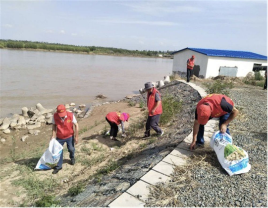 陈袁滩镇的青年志愿者在黄河边捡拾垃圾。(图片由陈袁滩镇镇政府提供)