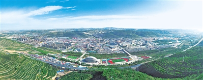 青翠环绕的西吉县城。