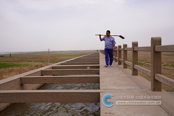 6月10日下午,顶着扑面而来的沙尘,在870米李家坝扬黄渡槽,养护职工张剑之渠道巡护比往常多了10多分钟。