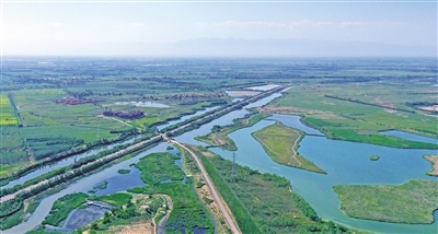 ——建成滨河水系截污净化湿地扩整连通工程。完成6条重点入黄排水沟人工湿地建设,建成1万亩水域的滨河水系湿地扩整连通工程,利用现有滨河大道东侧8223亩水域,连通52.6公里10785亩水域,河道的连通疏浚增加了水体流程和流量,配以科学种植、养殖水生植物及水生动物、菌类、藻类等形成的完整湿地生态净化系统,有效恢复了黄河滩地生物多样性,黄河银川段水质稳定达到地表水Ⅳ类及以上标准,滨河生态廊道绿化水平得到有效提升。