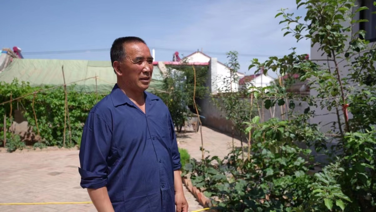 海原县三河镇富陵新村村民苏海军在院子里。
