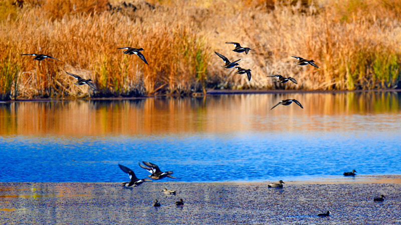 宁夏的深秋在闪光:鸟儿灵动、河湖宁谧、色彩斑斓!