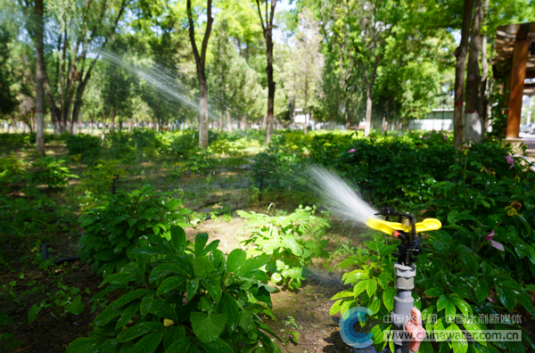 走进宁夏回族自治区银川市西夏区的宁夏建设职业技术学院,草地青翠、鲜花绽放。新安装的节水装置正微喷“细雨”,浇灌着盎然的绿色和生机。