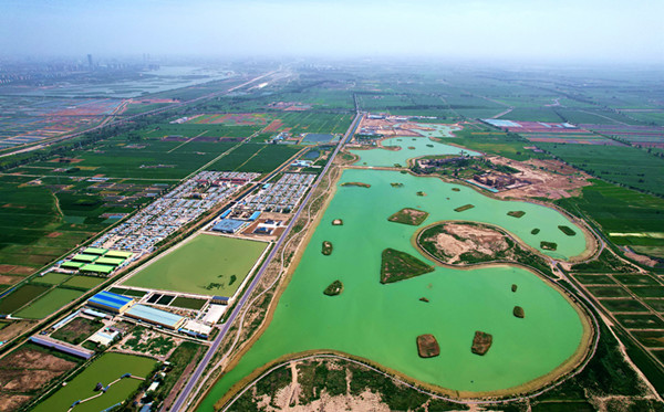 6月25日,银川市西夏区犀牛湖碧波荡漾,犹如镶嵌在大地上的一块碧玉。2023年,西夏区争取中央财政污染防治资金3140万元,实施犀牛湖水生态治理项目,目前已完成整体工程量的80%。该项目的实施不仅将改善犀牛湖水质,还将形成大片植物缓冲地带,对改善区域小气候起到积极作用。(记者 王洋 摄)