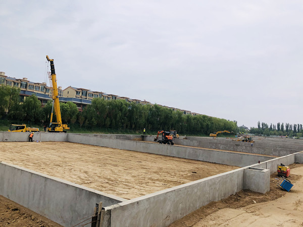 灵武市第二污水处理厂人工湿地项目是黄河流域(灵武段)入黄支流水生态修复工程的重要组成部分,建设范围位于灵武市西湖西侧坑塘(景观水道),目前三标段人工湿地工程已经完成潜流湿地混凝土浇筑。