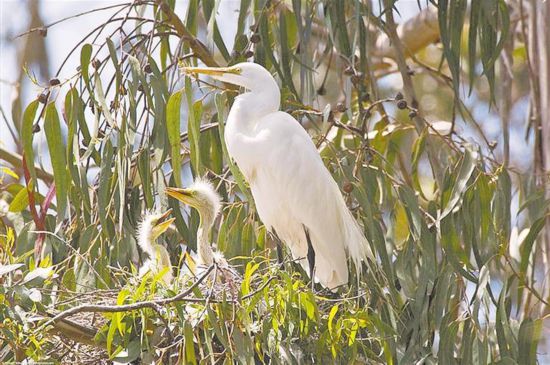 白鹭和幼鸟。(图片由石嘴山市文化体育旅游广电局提供)