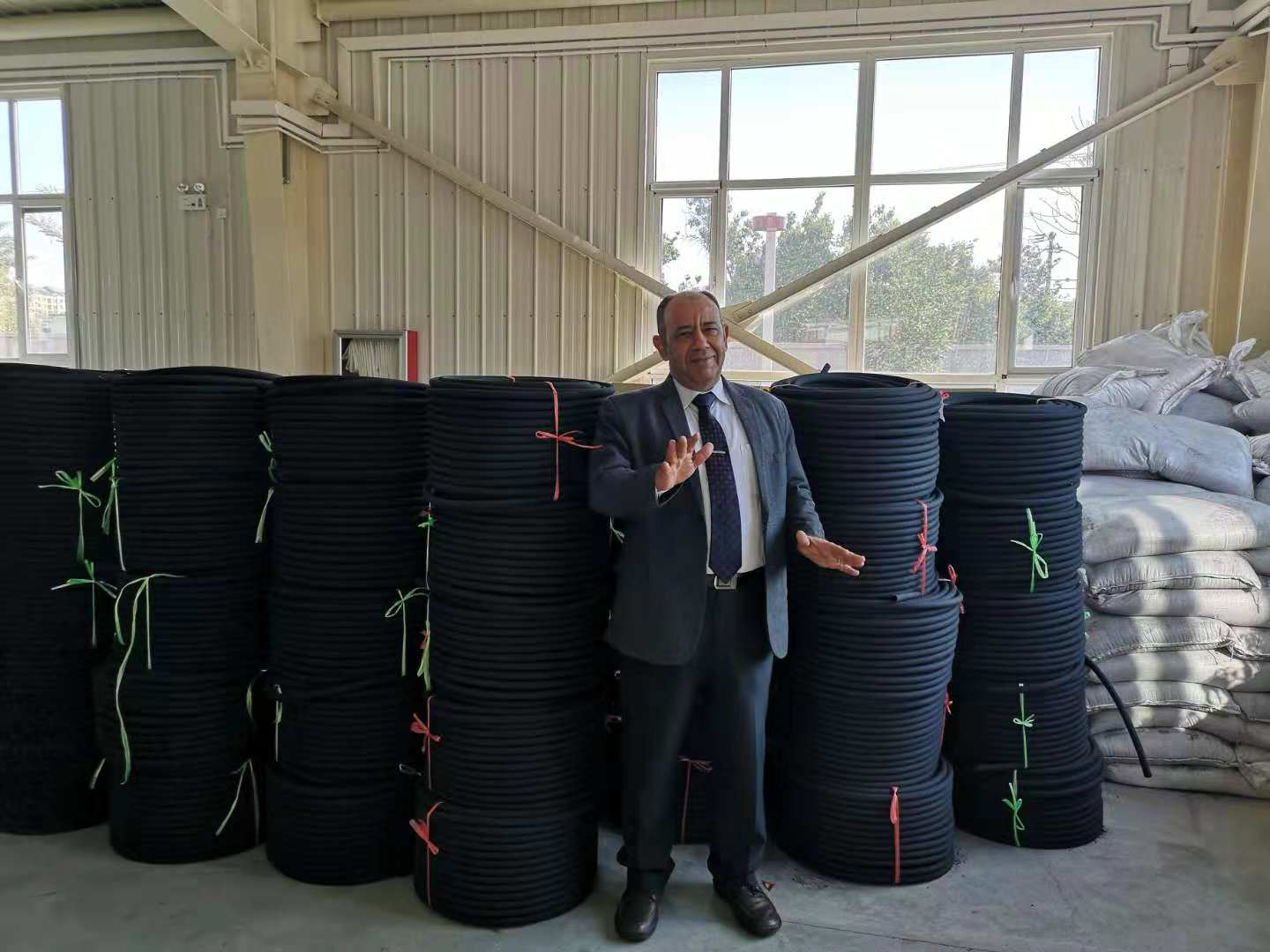 “这是我们的复合渗灌管,能深入沙漠和盐碱地底层,实现精准的水肥输送;那是光伏小屋,把‘节水+光伏’融为一体,哪怕远在千里,也能一键指挥作物‘喝水’、享受阳光。”公司负责人孙兆军介绍,这些诞生于西北干旱地区的技术,如今正扬帆远航,先后在阿曼、埃及、卡塔尔等5个国家“落户”,成为中国荒漠化防治技术出海的一张“绿色名片”。