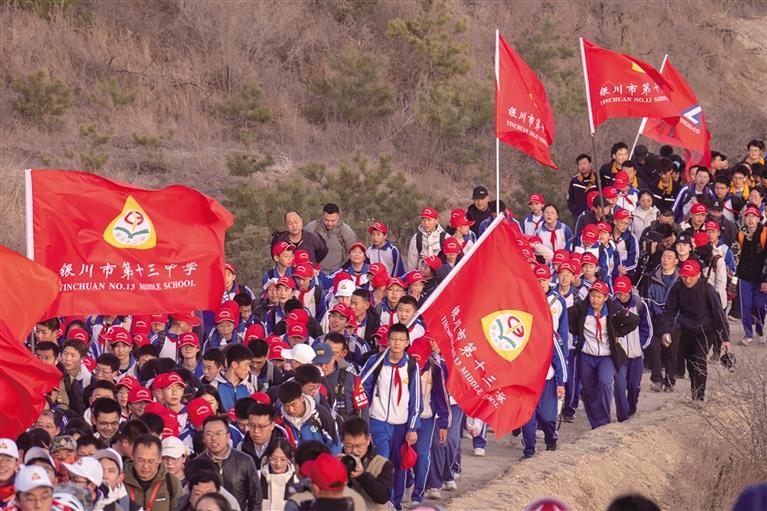 来自固原二中、弘文中学以及宁夏部分学校的2300余名师生徒步往返108里,赴任山河烈士陵园祭奠英烈。