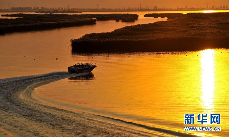 秋天的沙湖,衔着群山的守望,书写着“秋水共长天一色,落霞与孤鹜齐飞”的美丽诗行,舟行碧波苇花香。