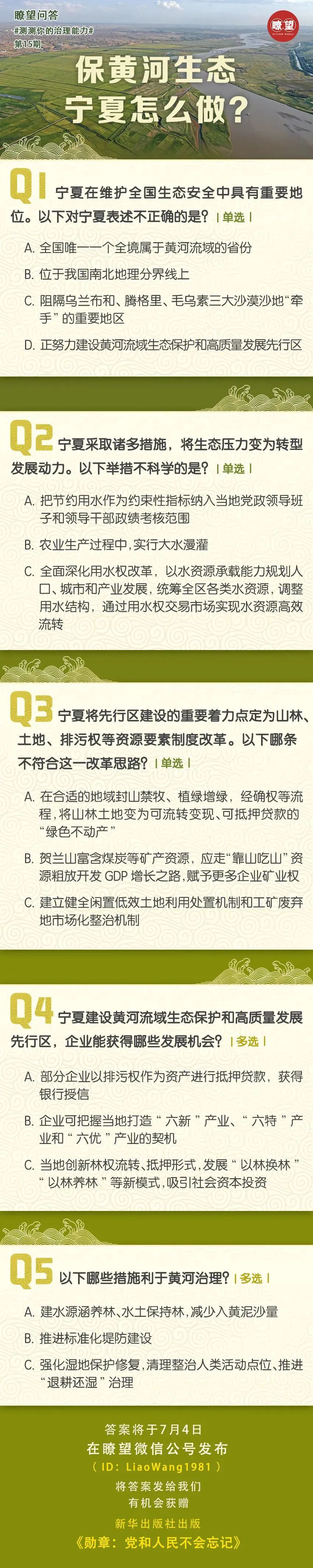 为西北生态改善发力、为华北生态安全出力、为全国生态大局效力,共同唱好新时代“黄河大合唱”,已成为越来越多宁夏干部群众的行动自觉。自治区主席张雨浦说,党中央关心关注宁夏,支持支援宁夏,宁夏将以“上游担当”继续乘势而上,搞好生态保护,推动高质量发展,深化供给侧结构性改革,把战略机遇转化为现实发展优势。