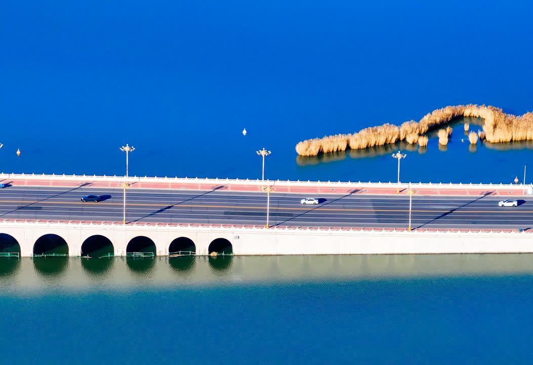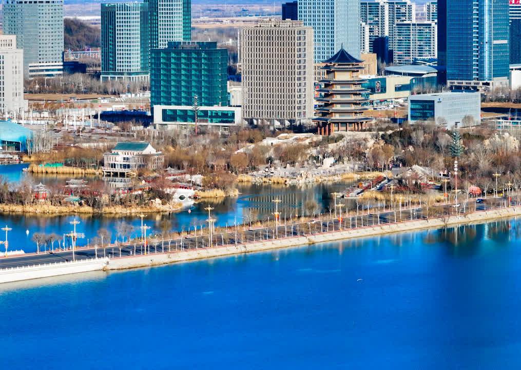 12月2日清晨,银川市空气质量为优,最低气温降至零下10摄氏度,凛冽的冷空气并未驱散城市的活力,反而裹挟着清新气息,勾勒出一幅“水天一色、山景相映”的生态画卷。随着无人机缓缓升空,镜头下的银川尽显澄澈:通透纯粹的“银川蓝”与碧波荡漾的阅海平分秋色,远处的贺兰山连绵起伏,轮廓清晰可辨,构成了冬日里最动人的风景。