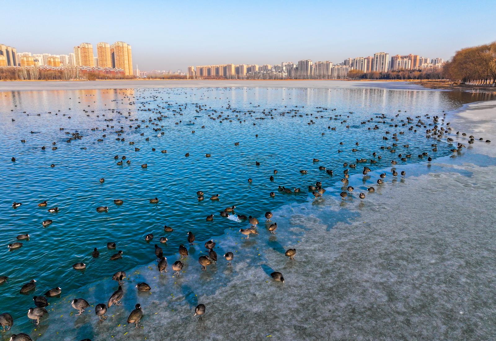 清澈的湖水、充足的食物、安全的栖息环境,让候鸟们忘却迁徙的奔波,在冬日湖城中安然越冬,为沉寂的冬日增添了灵动生机。