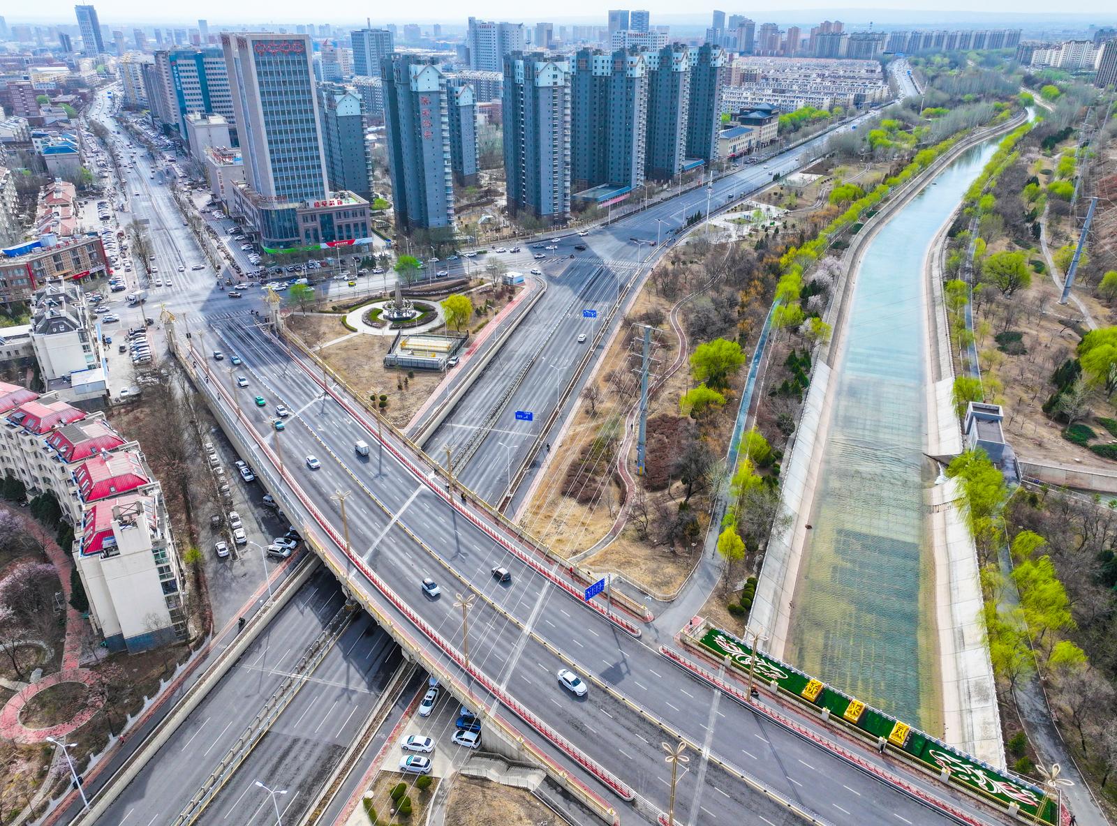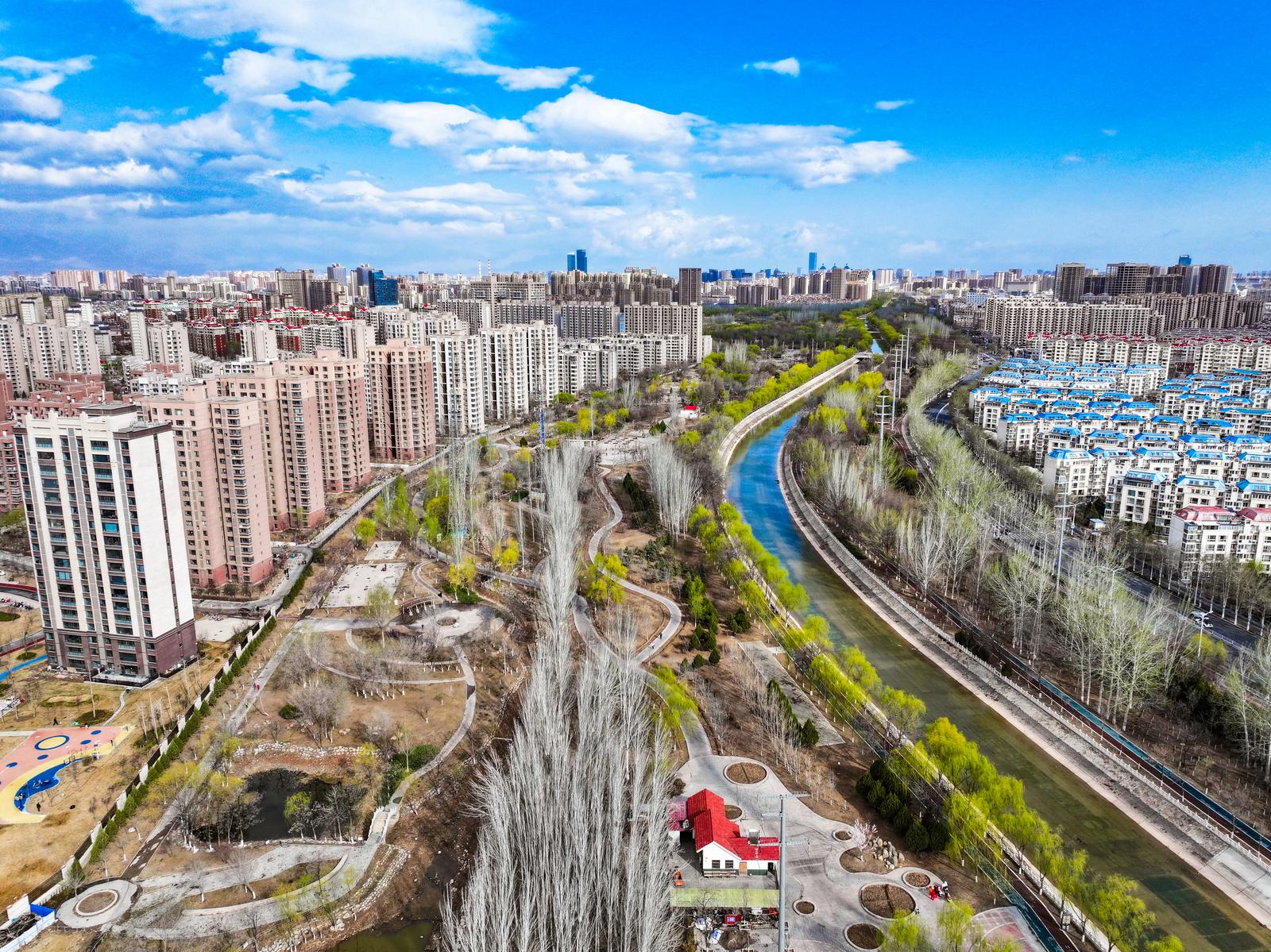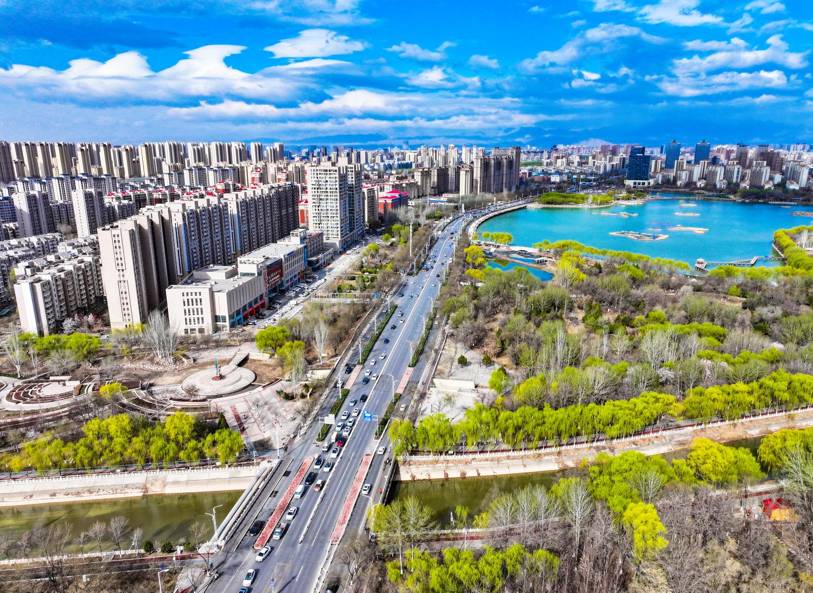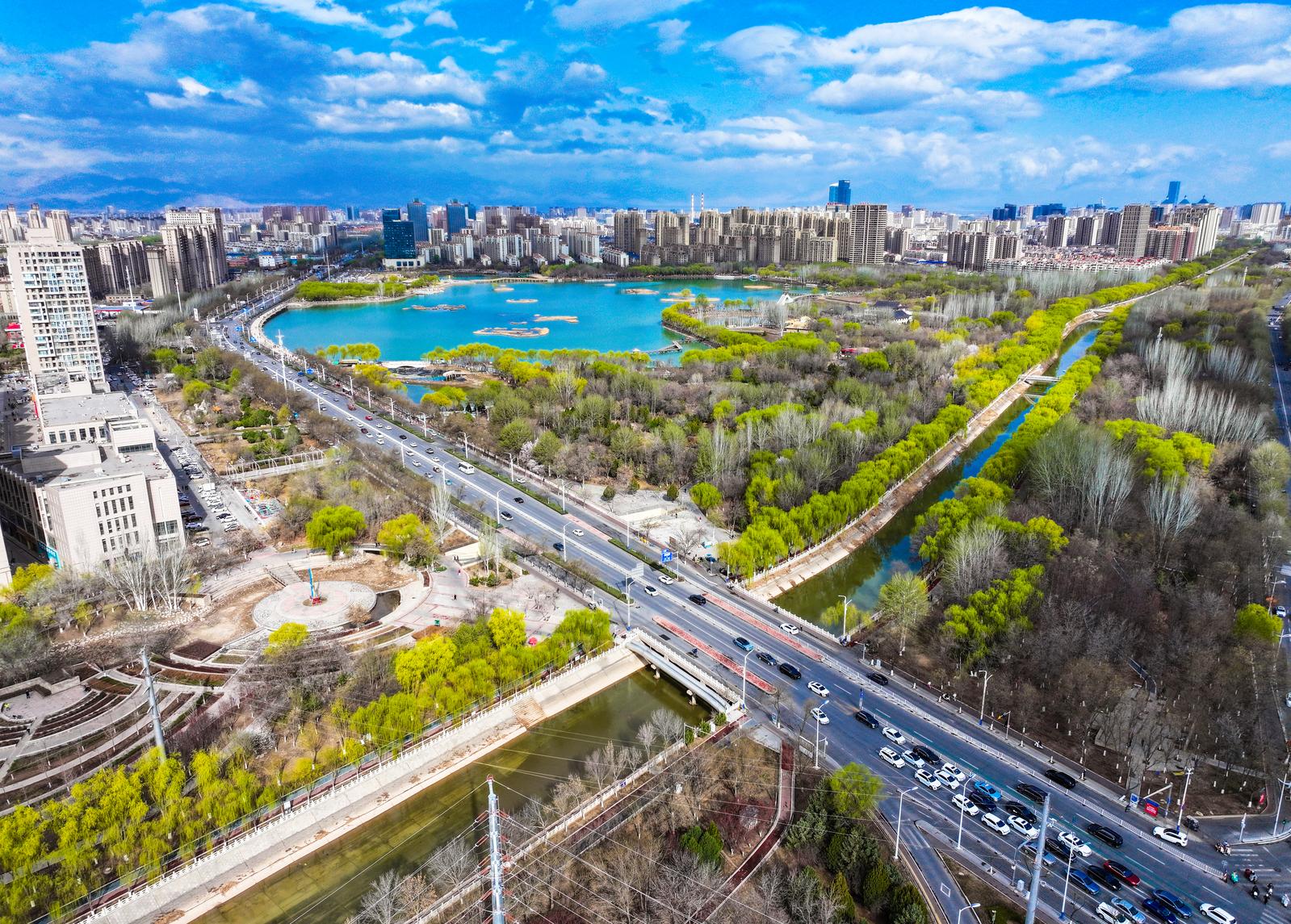 潺潺清流澄澈灵动,与两岸楼宇、新绿林木交相辉映,水在城中、城在绿中,为初春的银川添满诗意与生机。