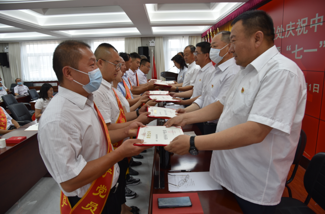 唐徕渠管理处:召开庆祝中国共产党成立101周年暨“七一”表彰大会,深入学习贯彻习近平总书记视察宁夏重要讲话和重要指示批示精神,认真学习宣传贯彻自治区第十三次党代会精神,带领全处党员干部为伟大的党奏响了一份“生日乐章”。奏响传承乐章,壮大永葆活力的党员队伍。在管理处党委书记的领誓下,2名新入党党员与老党员面向党旗,集体宣誓,庄严的仪式帮助新党员系好政治生命的第一颗扣子。 奏响信仰乐章,坚定永不褪色的政治信仰。为老党员陈学龙颁发“光荣在党50年”纪念奖章。参会人员表示,要以老党员为榜样,传承红色基因,赓续红色血脉,争做忠诚于党和人民的优秀“接班人”。奏响先锋乐章,彰显攻坚克难的时代底色。会议表彰了3个先进党支部、4名优秀党务工作者、15名优秀共产党员,并为15名党员先锋岗、5个优质服务示范段授牌。受表彰代表通过发言,分享工作经验、交流工作思路,倡议全处党员干部职工争当伟大理想的追梦人,争做伟大事业的力生军,勇做新时代的弄潮儿,在全面建设美丽唐徕的广阔天地中当先锋、打头阵、做模范。奏响思想乐章,筑牢兴渠为民的唐徕根魂。处党委书记讲述了一堂题为“深入贯彻自治区第十三次党代会精神,奋力谱写水利高质量发展唐徕篇章”的专题党课,勉励党员干部要切实把学习宣传贯彻党代会精神焕发出的政治热情转化为做好当前各项工作的强大动力,围绕治水兴渠为民的责任担当,奋力答好新时代忠诚答卷、实干答卷、创新答卷、发展答卷、廉洁答卷。
