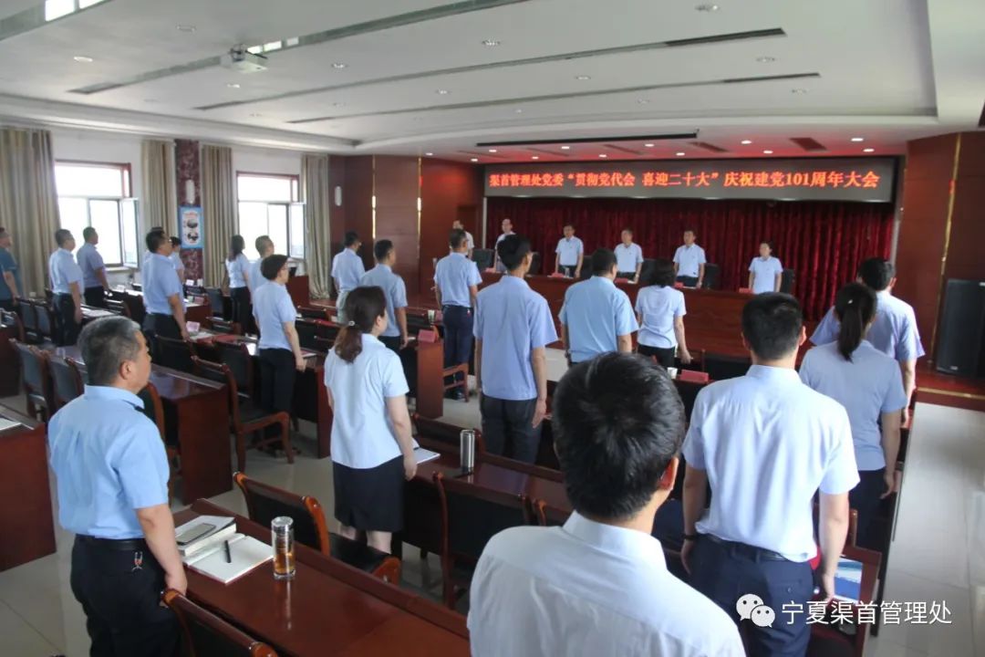 渠首管理处:召开“贯彻党代会、献礼二十大”庆祝建党101周年大会。会上,广大党员干部满怀赤诚,重温了入党誓词、共唱《没有共产党就没有新中国》,为在7月1日入党的两位党员过政治生日。处党委书记张锋为广大党员干部作了“强根铸魂,精业笃行,以高质量党建引领高质量发展”的专题党课;纪委书记哈全宏原文领学自治区第十三次党代会精神报告。广大青年以诗朗诵、演讲形式,表达了对党和祖国的无限热爱,进一步激荡起黄河流域生态保护和高质量发展先行区建设的豪情。