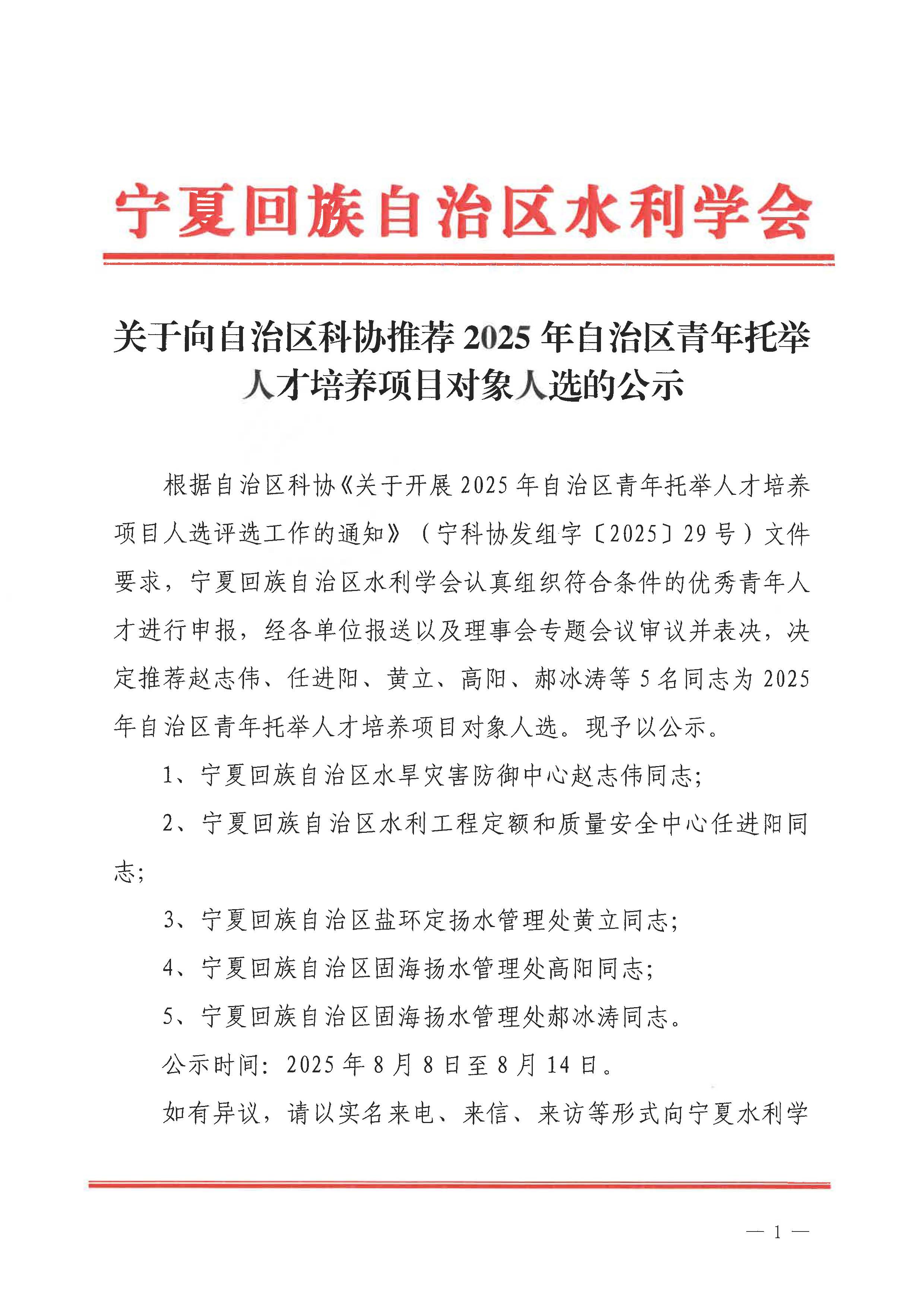 关于向自治区科协推荐2025年自治区青年托举人才培养项目对象人选的公示
