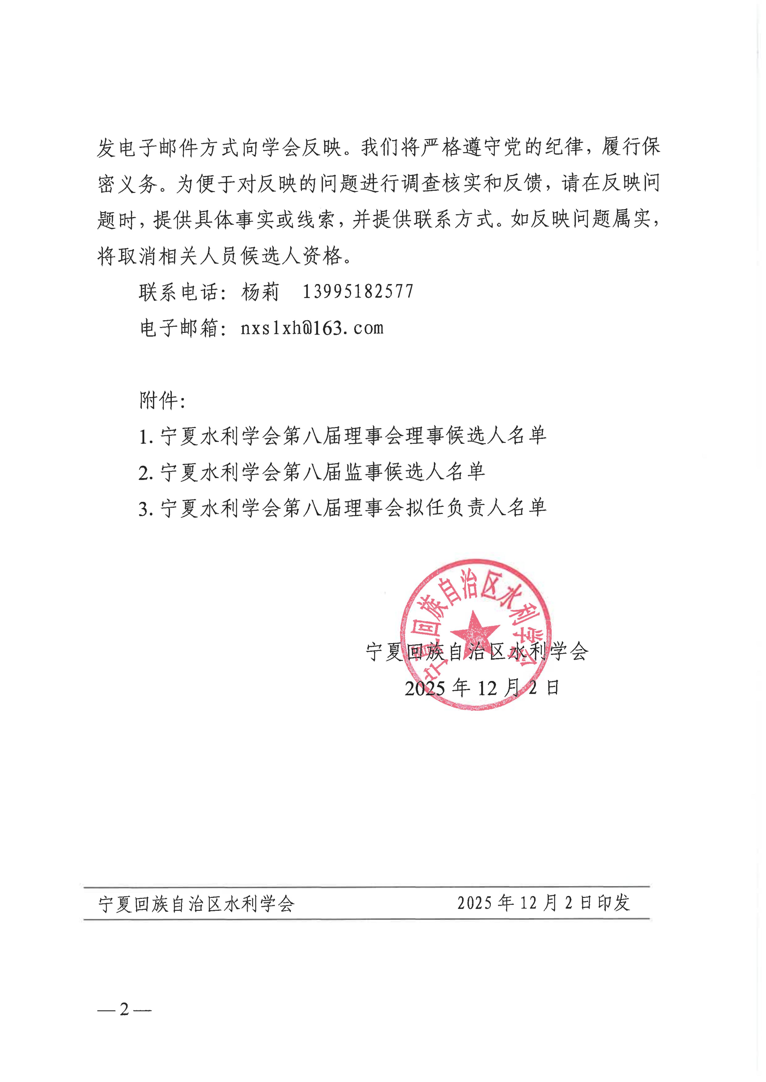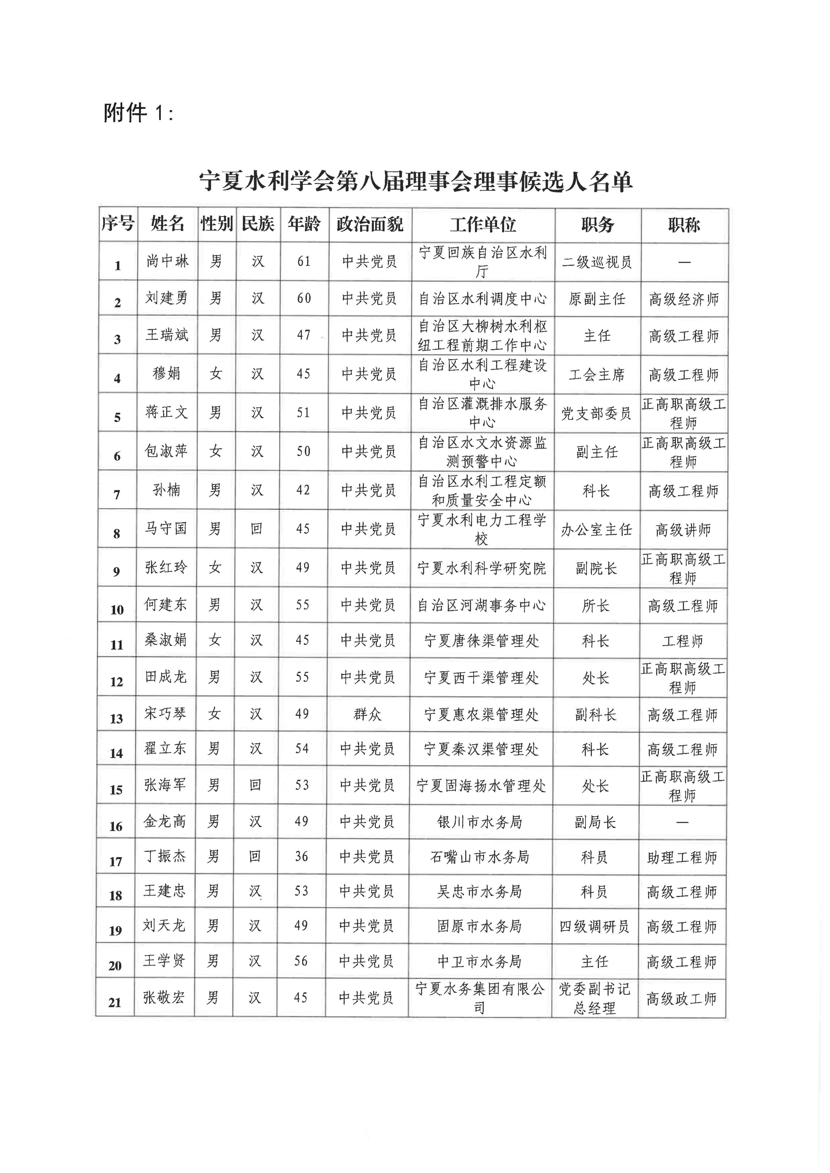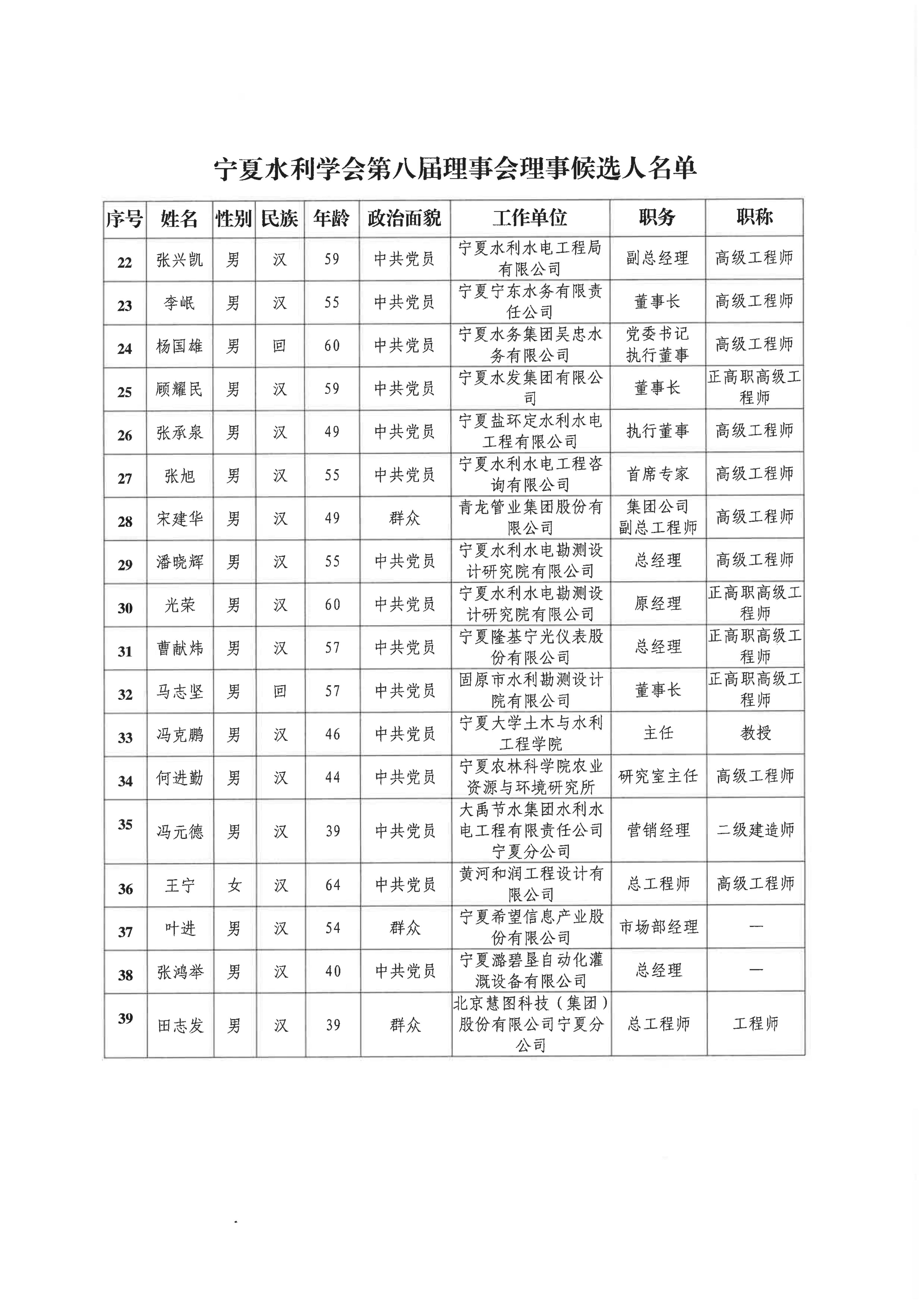 宁夏水利学会关于第八届理事会拟任负责人、理事候选人、监事候选人的公示 - 宁水学会发〔2025〕10号