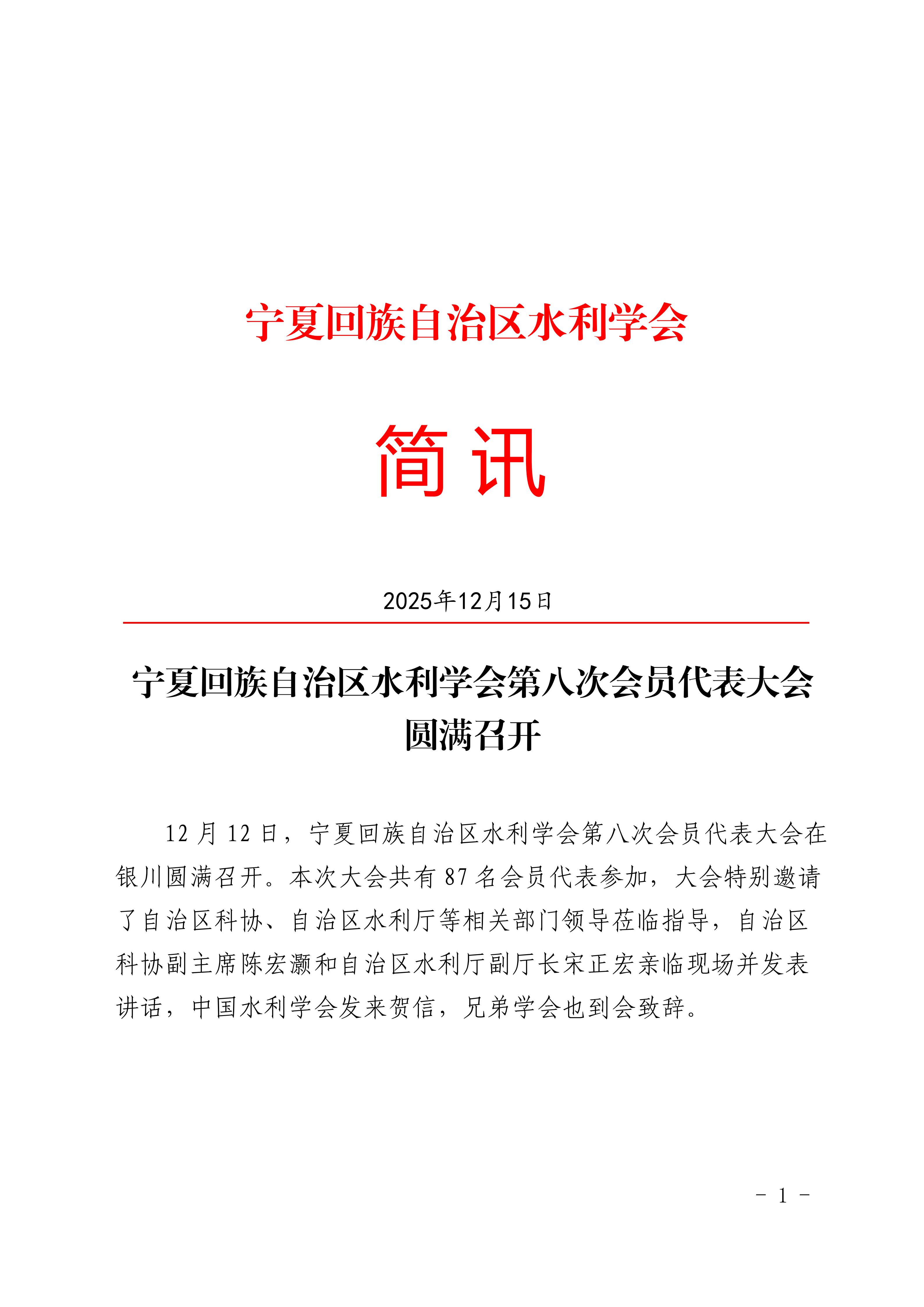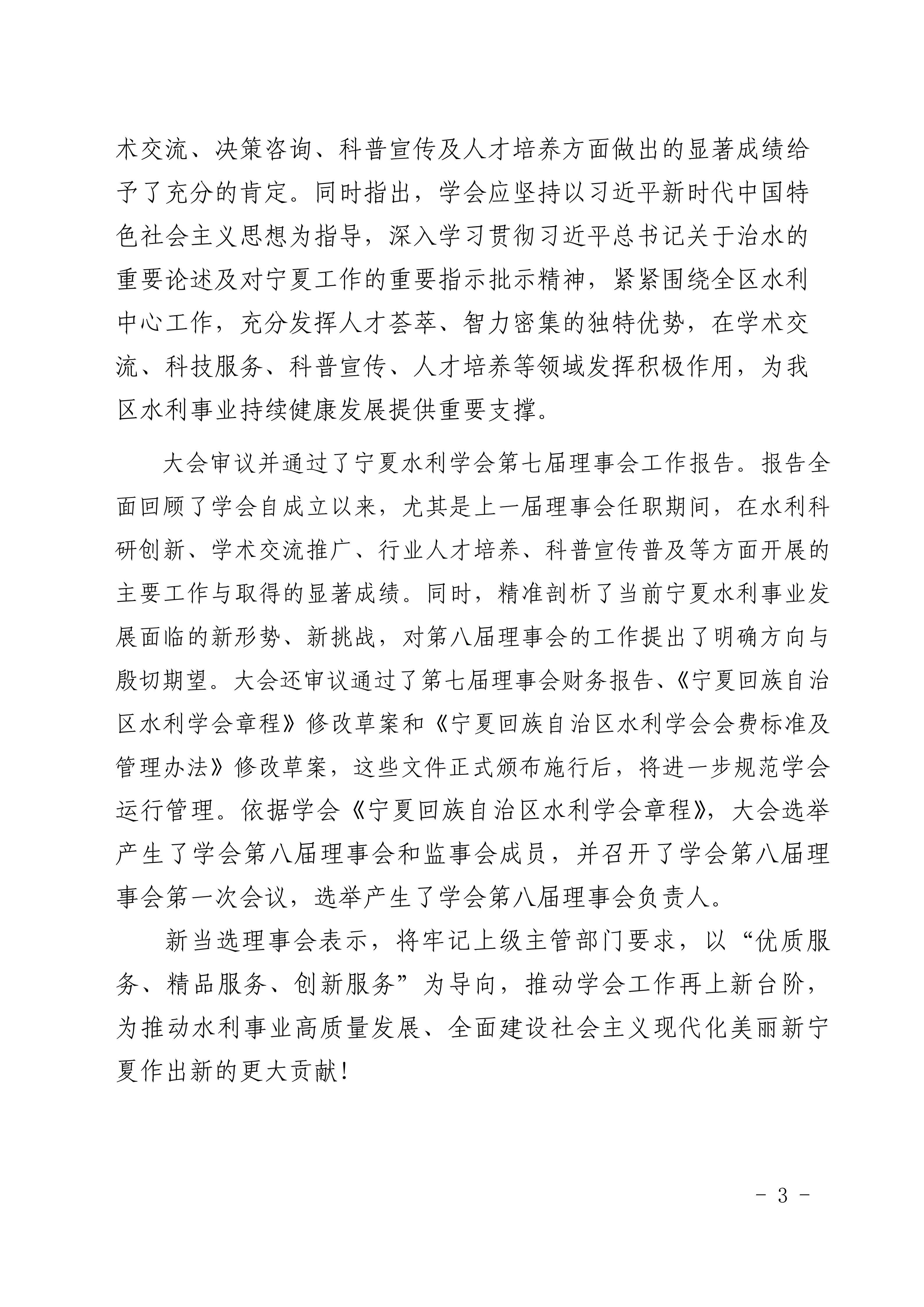 宁夏回族自治区水利学会第八次会员代表大会圆满召开