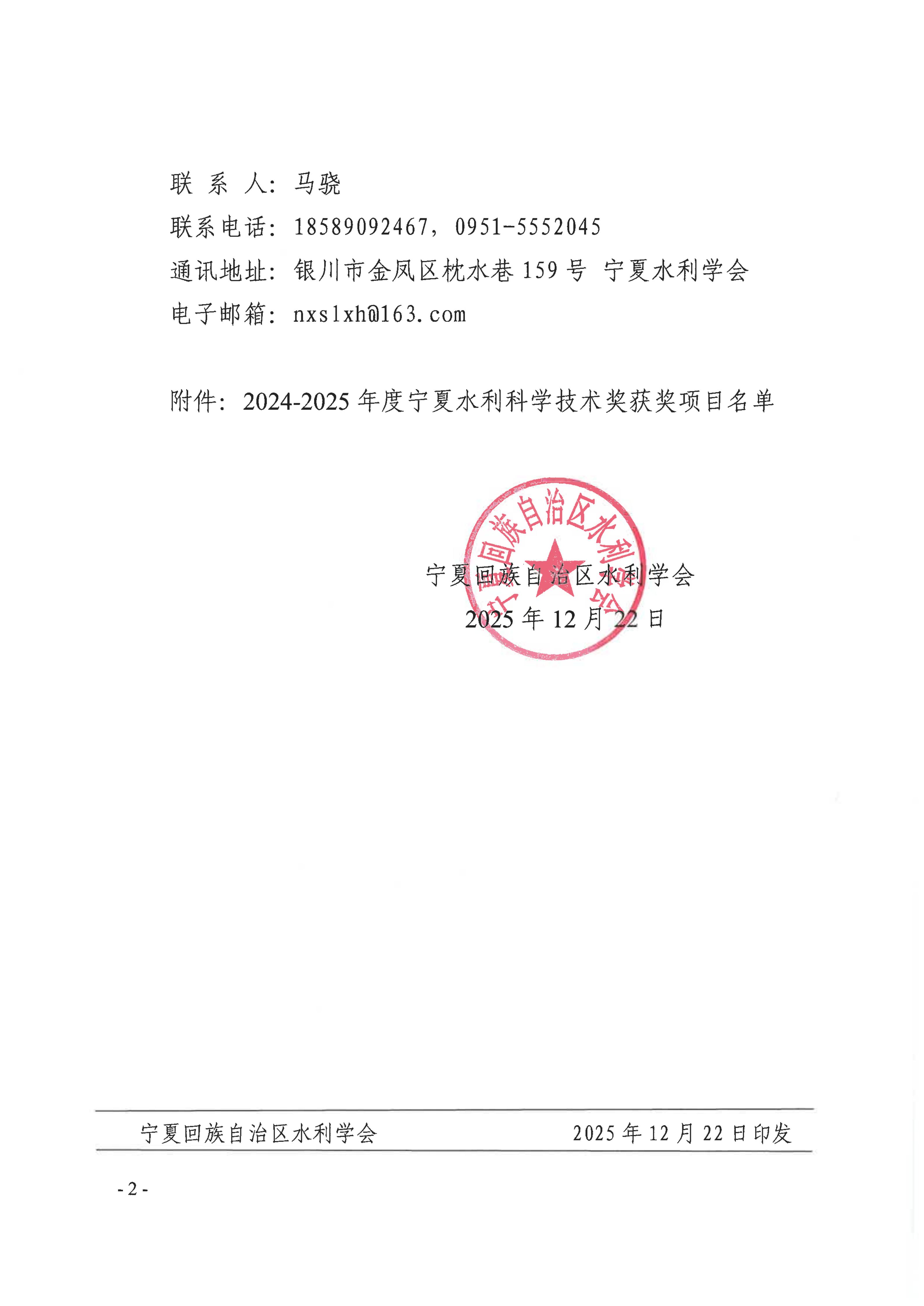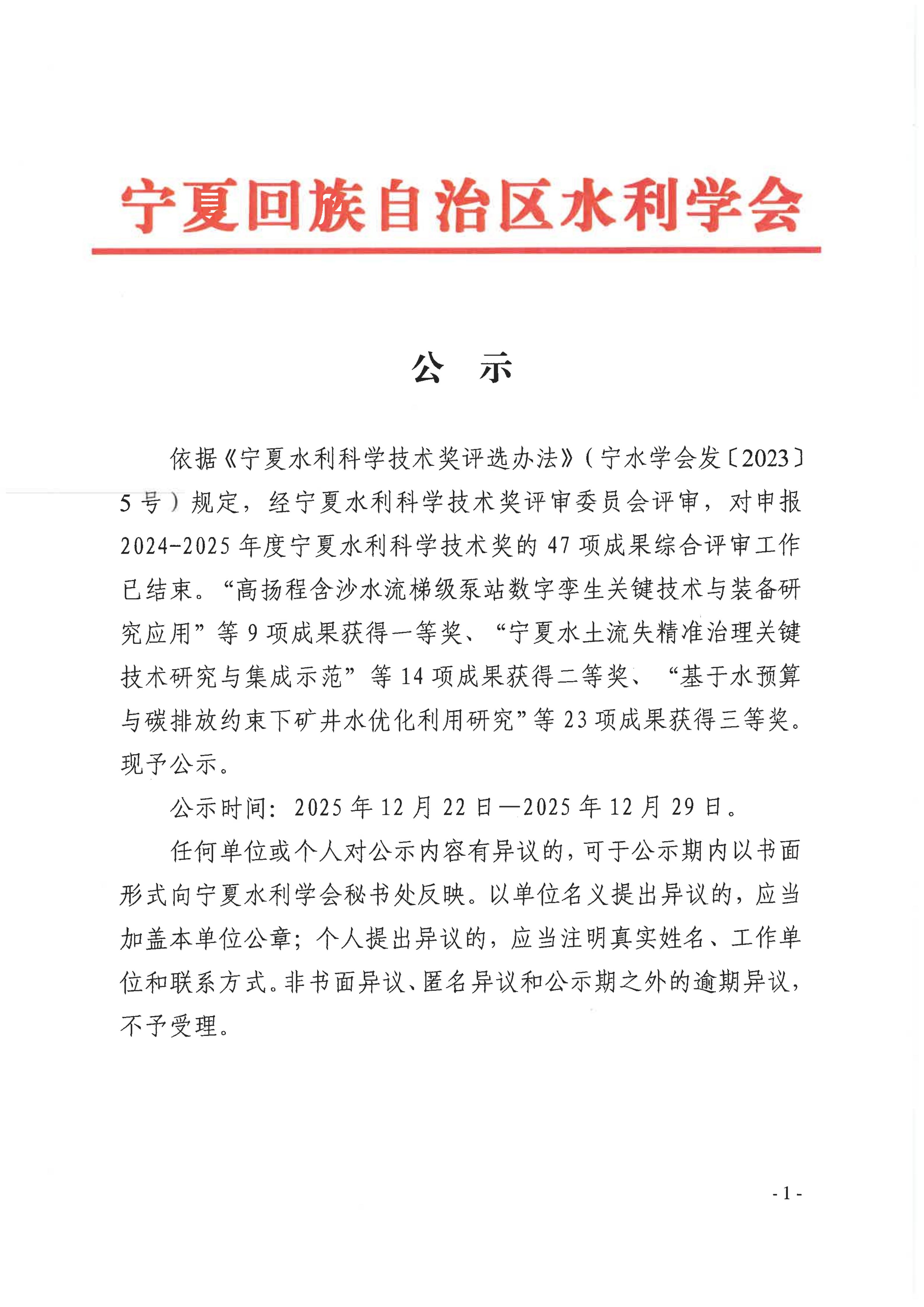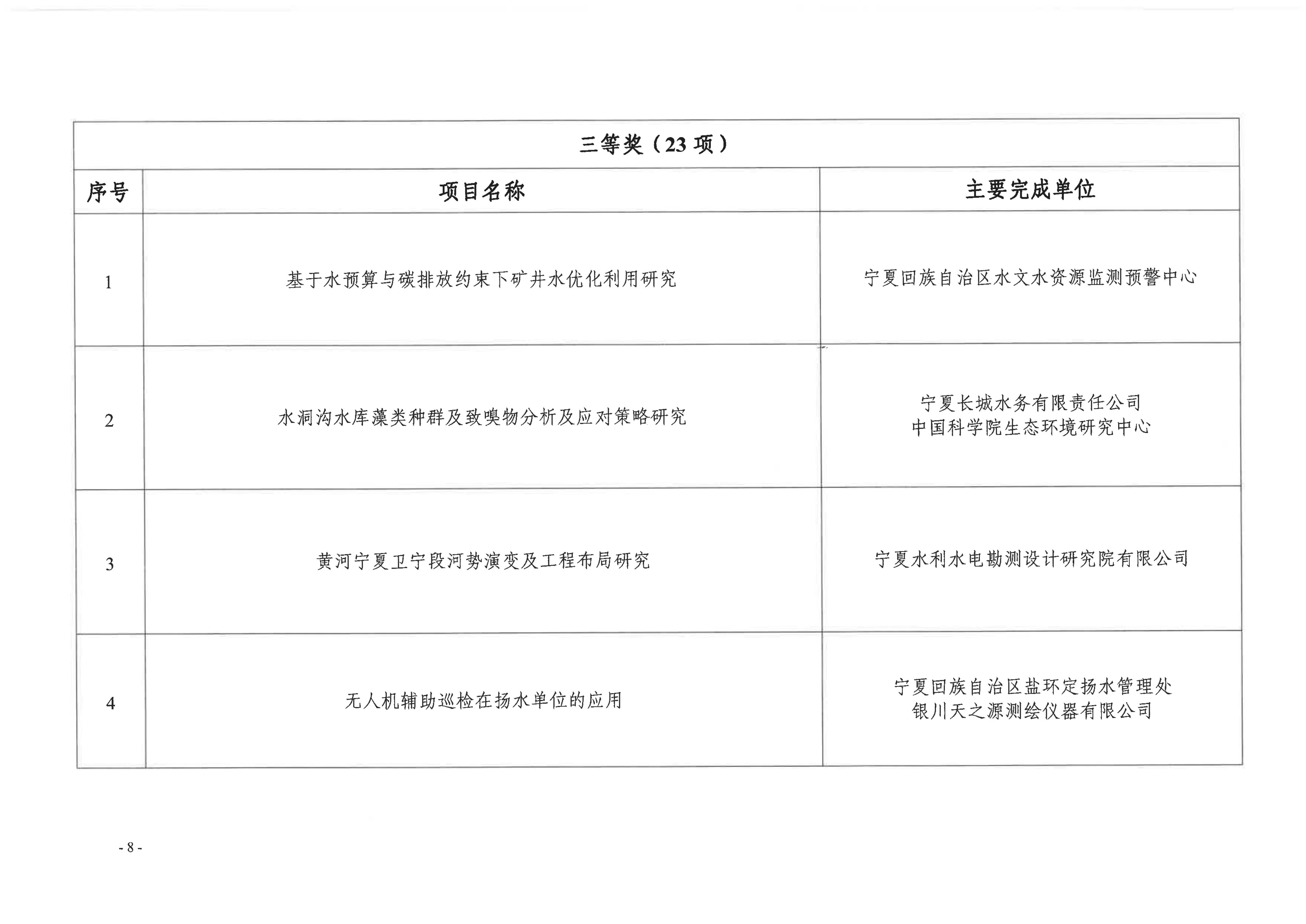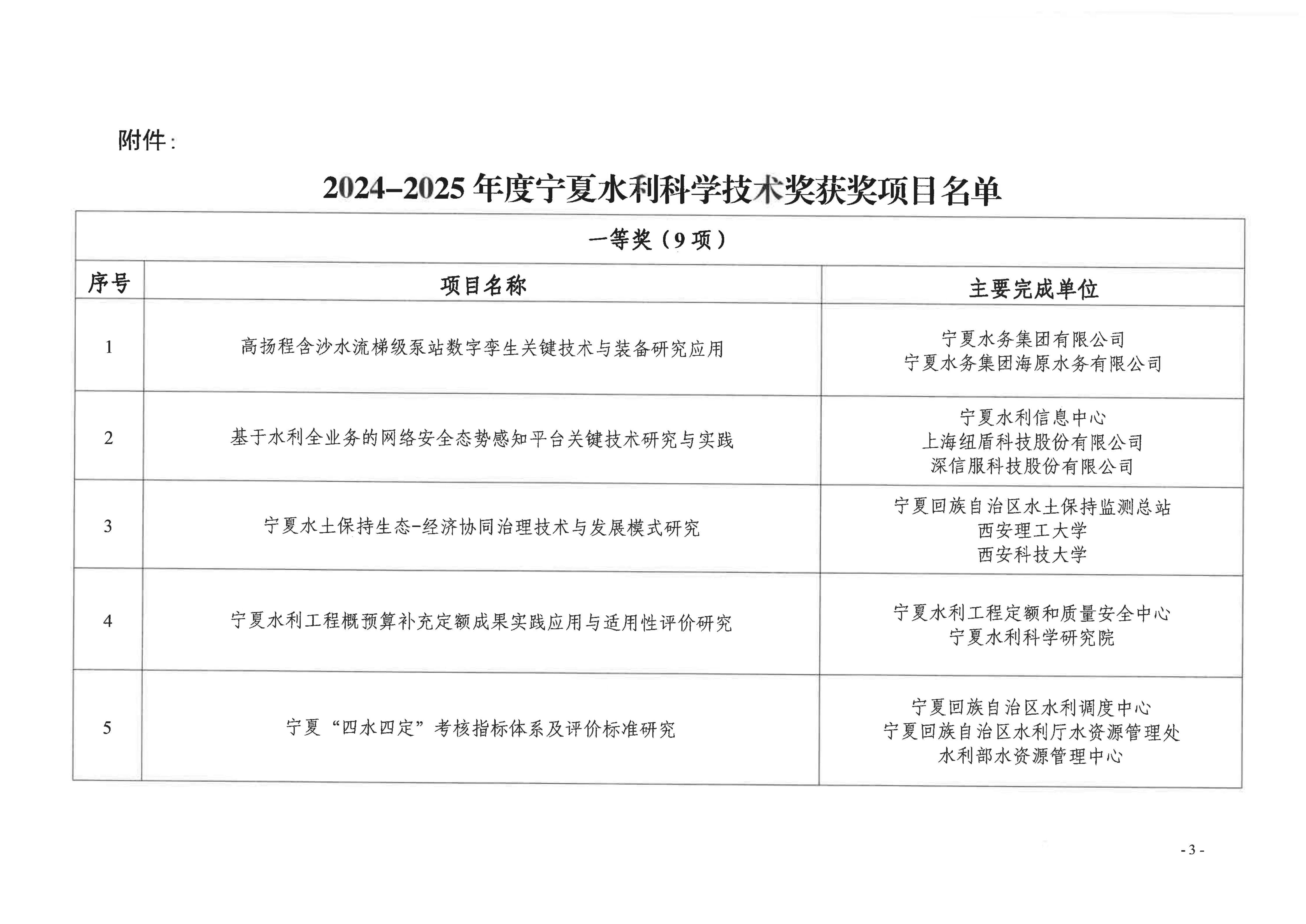 2024-2025年度宁夏水利科学技术奖获奖结果公示