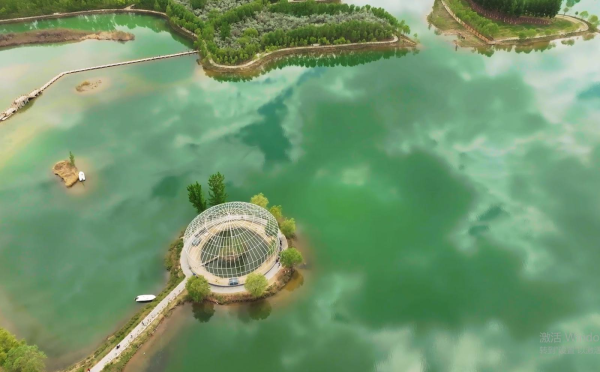 航拍中卫香山湖国家湿地公园。通讯员 赵永放
