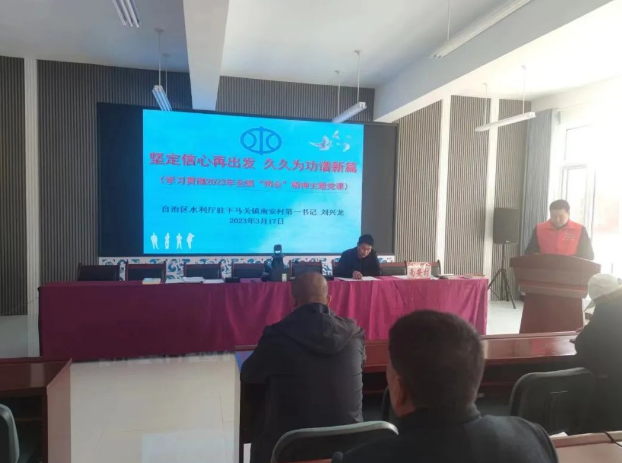 2023年3月17日,自治区水利厅驻同心县下马关镇南安村工作队,在南安村党总支主题党日活动中,向党员们传达了被同心县授予“五星级基层党组织”“党建工作示范村”的评定文件,大家分享获奖感言,畅谈今后的发展规划。