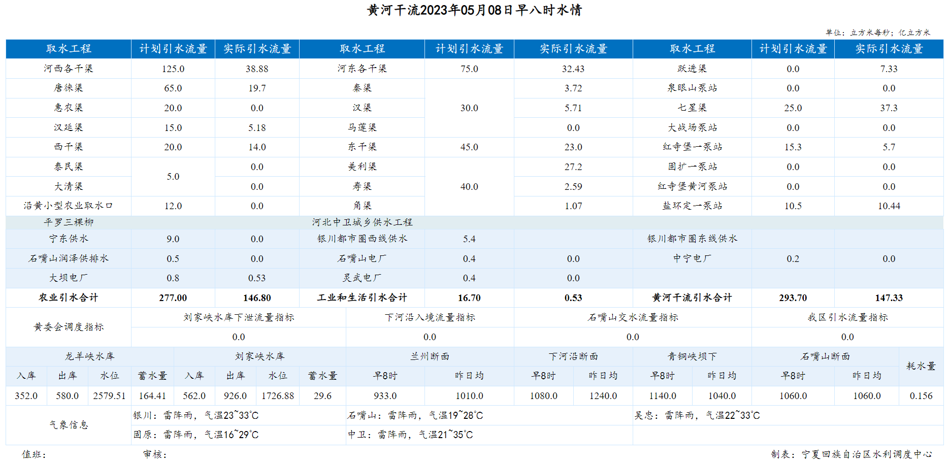 【黄河水情】5月8日,下河沿早8时流量1080.00m³/s