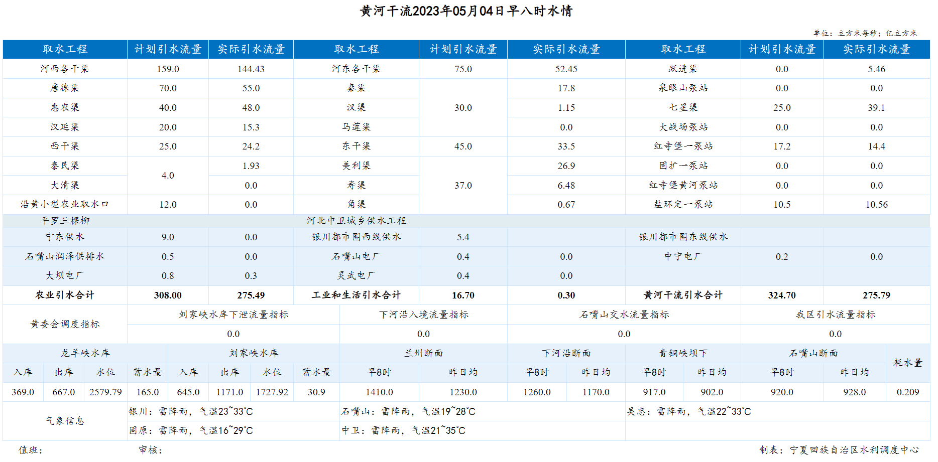 【黄河水情】5月4日,下河沿早8时流量1260.00m³/s