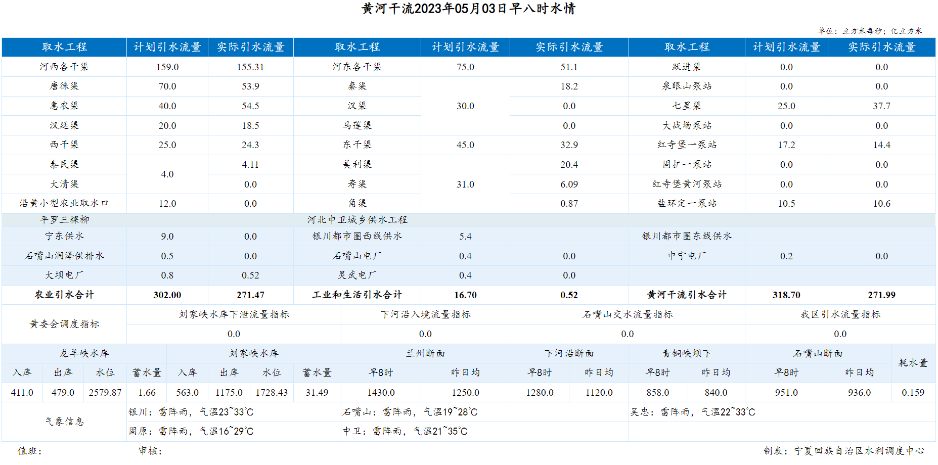 【黄河水情】5月3日,下河沿早8时流量1280.00m³/s