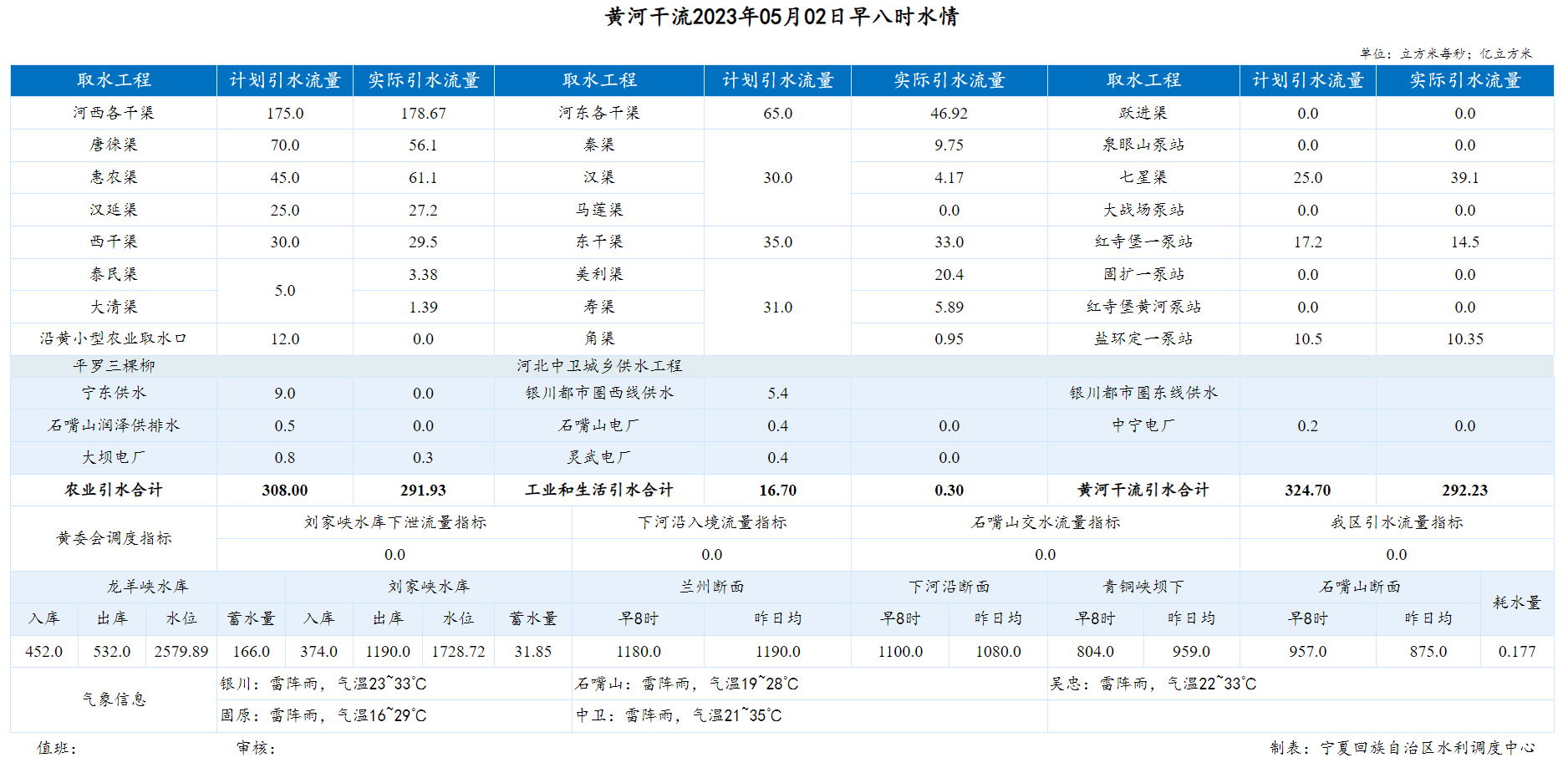 【黄河水情】5月2日,下河沿早8时流量1100.00m³/s