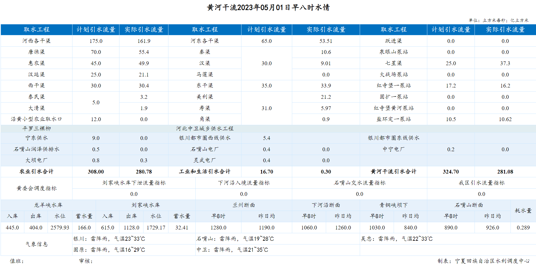 【黄河水情】5月1日,下河沿早8时流量1060.00m³/s