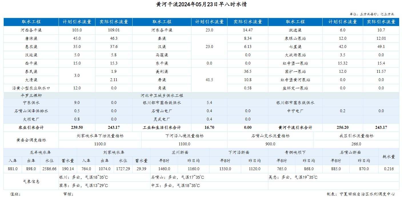 【黄河水情】5月23日,下河沿早8时流量1330.00m³/s