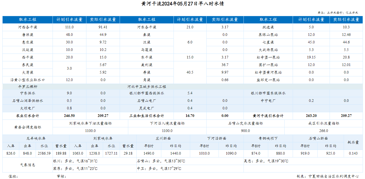 【黄河水情】5月27日,下河沿早8时流量1010.00m³/s