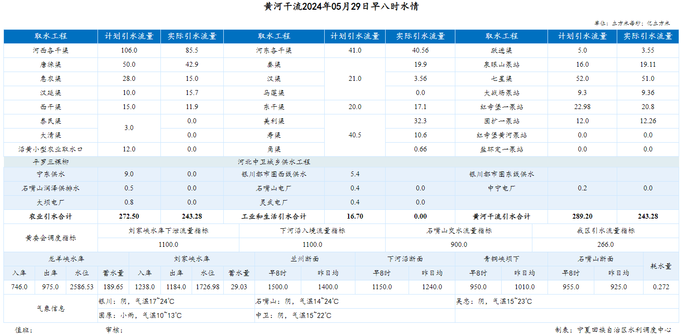 【黄河水情】5月29日,下河沿早8时流量1150.00m³/s