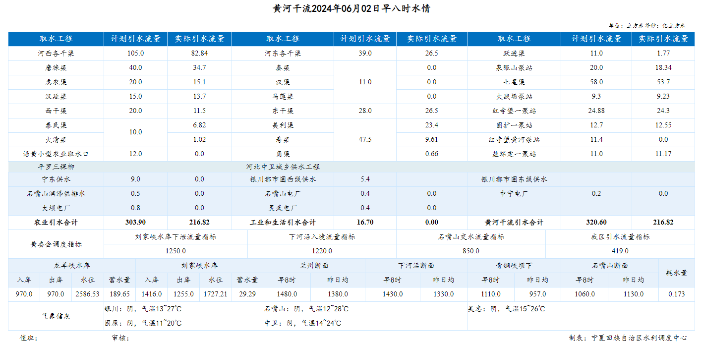 【黄河水情】6月2日,下河沿早8时流量1430.00m³/s