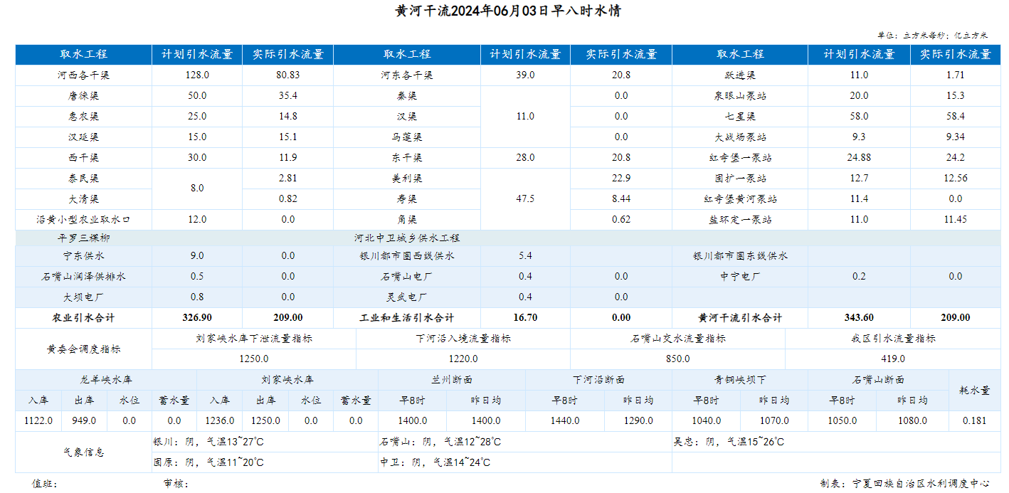 【黄河水情】6月3日,下河沿早8时流量1440.00m³/s