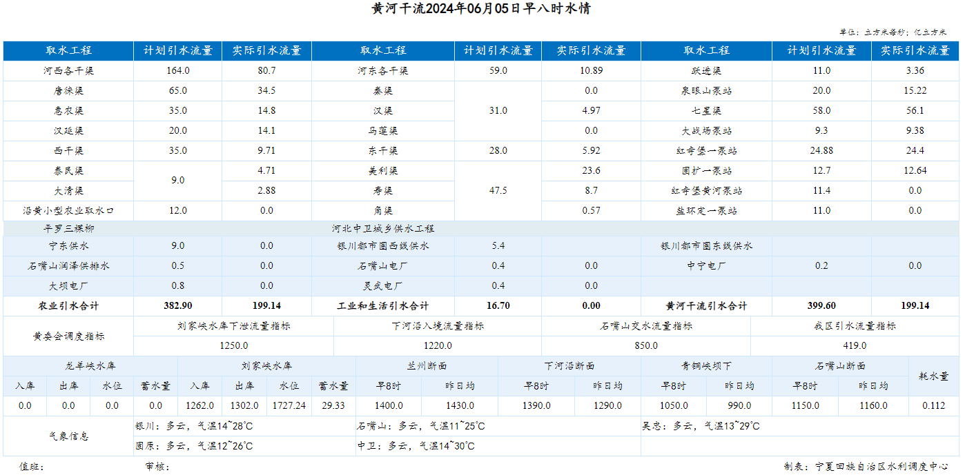 【黄河水情】6月5日,下河沿早8时流量1390.00m³/s