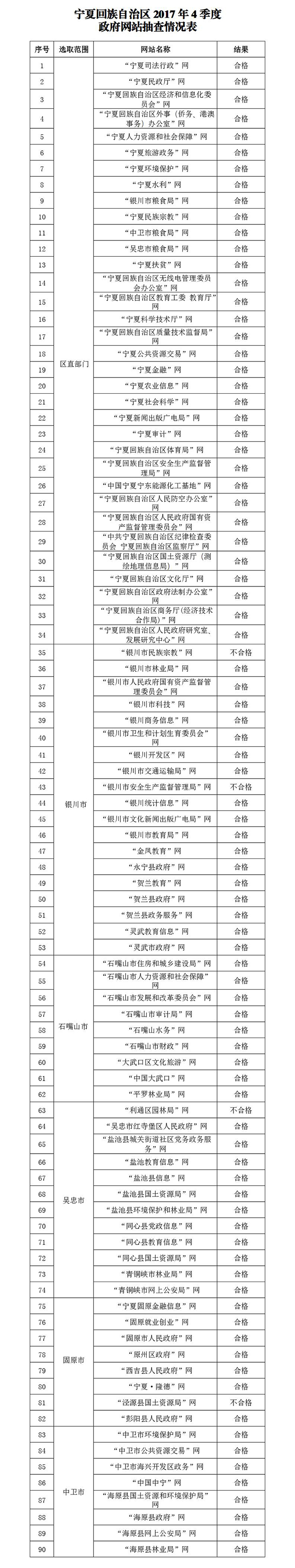 2017年4季度宁夏政府网站抽查情况