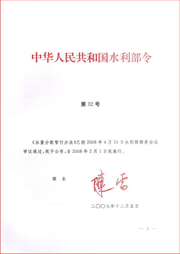 第一条 为实施水量分配,促进水资源优化配置,合理开发、利用和节约、保护水资源,根据《中华人民共和国水法》,制定本办法。